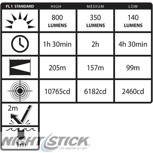 Этот компактный металлический многофункциональный тактический фонарь оснащен сверхяркими светодиодами CREE® с мощностью светового потока 800 люмен, который работает в сочетании с высокоэффективным глубоким параболическим отражателем для создания полезного луча на расстоянии 205 метров. Переключатель на задней крышки обеспечивает мгновенную или постоянную функциональность, а также выбираемых пользователем параметров высокой, средней или низкой яркости, и дезориентирующий стробоскоп. Питание происходит от пары батареек CR-123 (входит в комплект). Корпус и колпачок изготовлены из алюминиевого сплава класса 6061-T6 и имеют анодированное покрытие типа III. Этот фонарь можно легко модернизировать до перезаряжаемой модели, добавив дополнительный литий-ионный аккумулятор, зарядное устройство и шнуры питания в аксессуарах.
